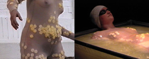 Die Figur steigt in die Wanne. Die Tabletten lösen sich ganz auf.
